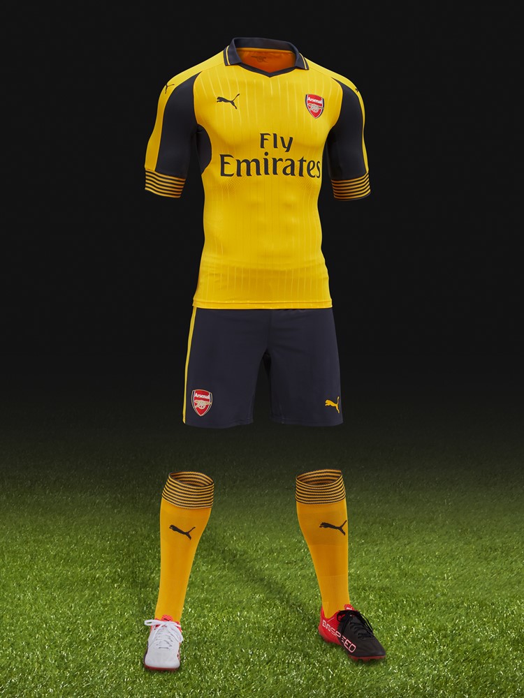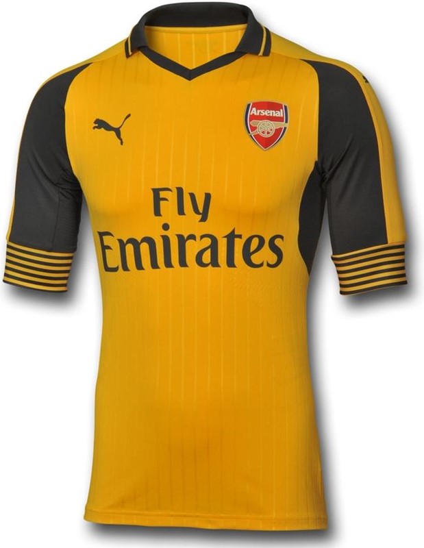 アーセナルの2016-17シーズンに向けた新ユニフォーム、アウェイは黄色を基調に紺を組み合わせた伝統的なデザイン。