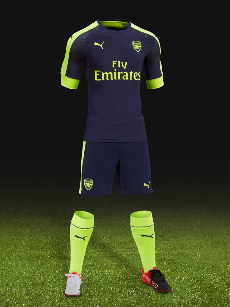 サードはアーセナルの輝かしい未来と革新性から、青を基調に差し色としてセーフティイエローを配置。モダンなイメージに仕上がっている。