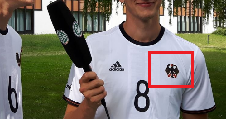 ドイツの場合は、左胸に普段のDFBロゴではなくドイツの国章「Bundesadler」のロゴが入っている。