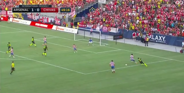 MLSオールスターズとの試合に1-2と勝利して迎えた日曜日のチバス・グアダラハラ戦、快速FWアレックス・オックスレイド=チェンバレンが決めたゴールがこちら。