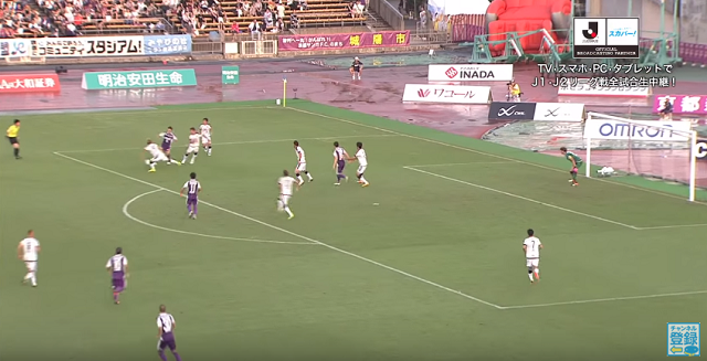 41分、エスクデロ競飛王のサイドチェンジから京都は左サイドを起点にチャンスを作る。