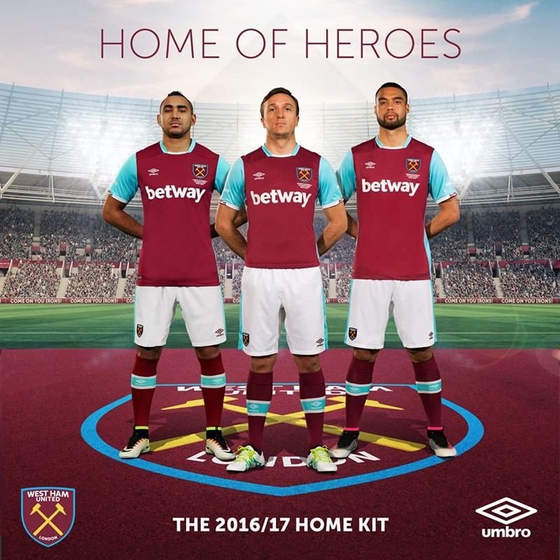 ウェストハムの2016-17シーズン新ユニフォームは、えんじに水色袖という伝統のデザイン。ロンドンのクラブであることを強調するため袖口にイギリス国旗のモチーフが取り入れられた。