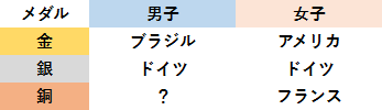 <表1>グレースノートのリオ五輪サッカー男女メダル予想