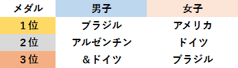 男子、ブラジル優勝は変えませんでしたが、銀メダルが何とコロンビア!アルゼンチンすら抑え、5度目の出場で初の五輪メダルゲットです。さらに、前回のロンドンで優勝したメキシコが3位に入り、2大会連続でのメダル獲得。