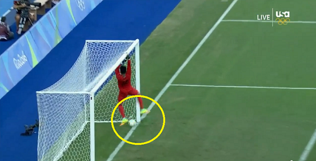 結局シャールがクロスバーを掴んでいる間にボールはゴールネットを割り、これが得点に。