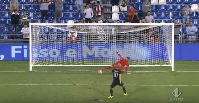 しかし、本田のシュートに勢いがないのを察知すると途中でしっかりと右足を残し、これをいとも簡単にセーブ。結局ミランはこの後ジャコモ・ボナヴェントゥーラがPKを成功させミランが勝利したが、本田にとっては少し後味の悪い結果となった。