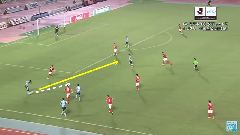 ボールを繋ぐことに意識が行きすぎて攻撃が停滞することもある川崎。効果的なアクションを起こしたのはやはり中村だった。