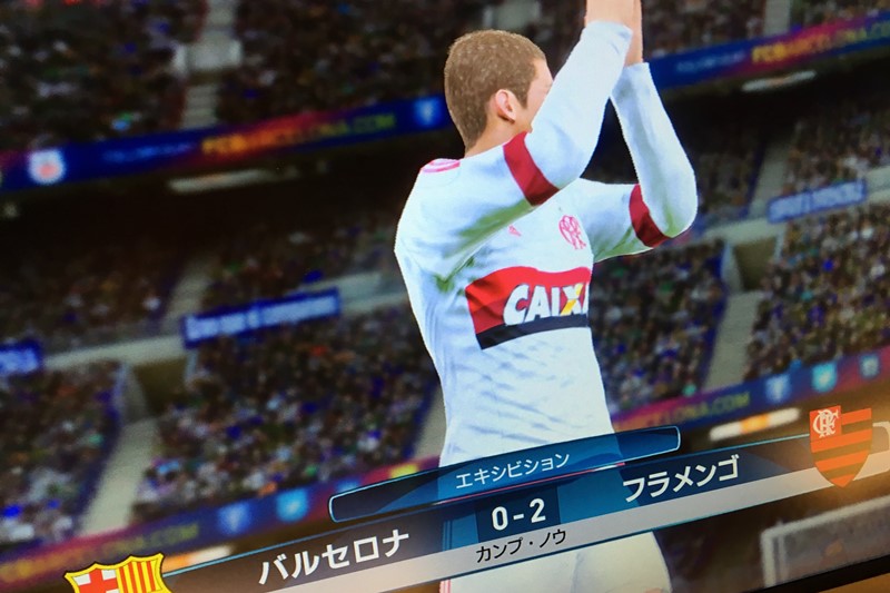 「ウイイレ部屋」のときに対戦したコナミの広報さんと再び対戦。フラメンゴでバルサをきっちり返り討ちにした。まだまだ練習が足りませんね!