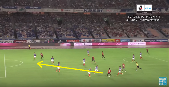 まるでダイアゴナルランのお手本のような鈴木のランニングだが、そこを見逃さなかった金崎も流石。どちらかと言うと使われる側の金崎だが、こうしたスルーパスで決定機を演出できるとなると、より完成度の高い選手になってくれるはずだ。