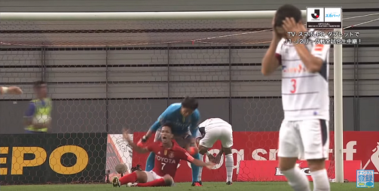 そんなこの試合で名古屋の新キャプテン、田口泰士が見せた決死のカバーリングが凄かった!