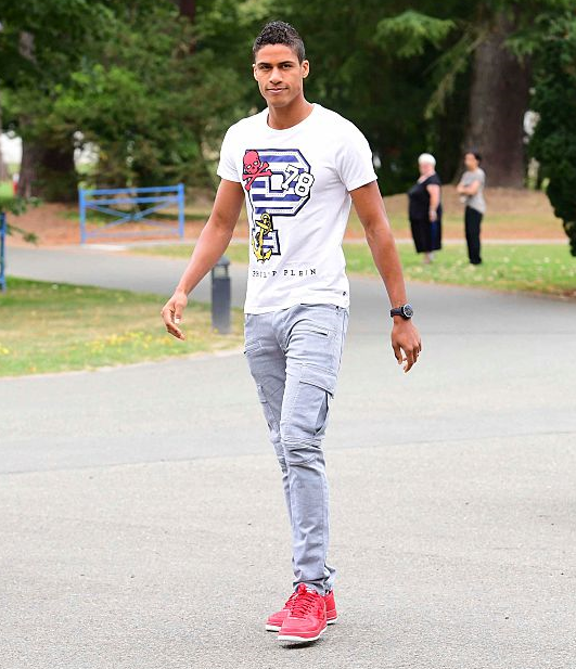 DFラファエル・ヴァラヌ(レアル・マドリー)。Tシャツはサッカー選手御用達ブランドの『philipp plein』。スニーカーは契約するNIKE。