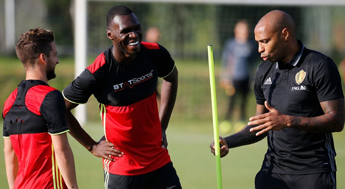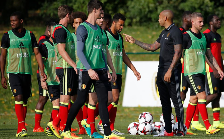 「ベルギー代表は歴史を作れる」と語ったというアンリ。シュート練習などを見守ったようだが、選手としては緊張するかも?