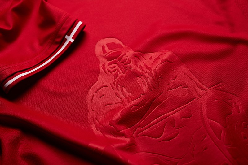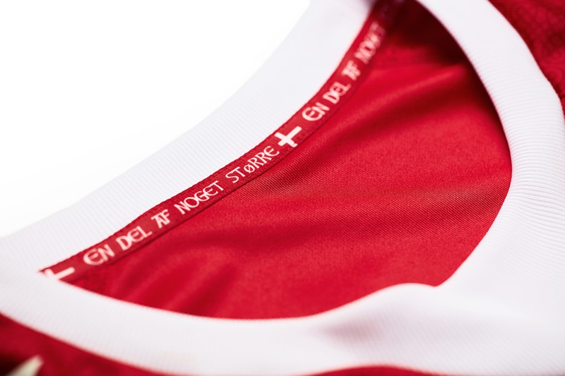 シャツの内側にプリントされた『En del af noget større』はデンマークサッカー協会(DBU)のモットーで、「私たちは、より大きなものの一部である」という意味。サッカーが健康や友情に作用し、社会の中で責任があることに対する宣言だという。