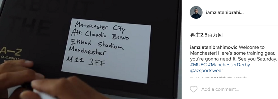 実はこれ、ダービーで対戦することになるブラボ宛に自身のブランドのスポーツウェアを送るというイブラヒモヴィッチなりの皮肉。そのため、キャプションには「マンチェスターへようこそ!これがトレーニングウェアさ。君にはこれが必要だろ。土曜日に会おう」と書かれている。