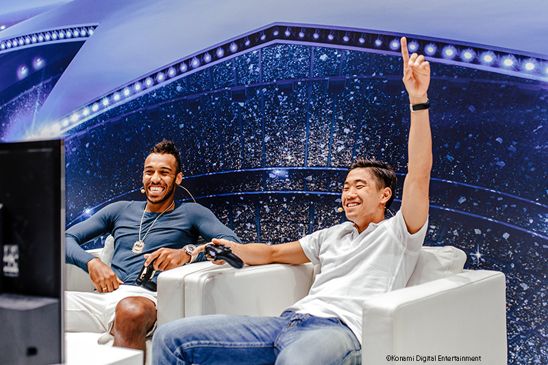 最後に、先月ドイツのケルンで開催された欧州最大級のゲーム見本市「gamescom」で行われたイベントの様子を紹介。オフィシャルパートナーとなったドルトムントから香川真司とピエール・オーバメヤングが出演し、海外版「ウイイレ」の『PES 2017』で対戦した。