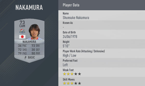 ゲーム上でフリーキックの値が最も高く設定されている選手TOP10が発表されている。それぞれの項目の意味は以下の通り。