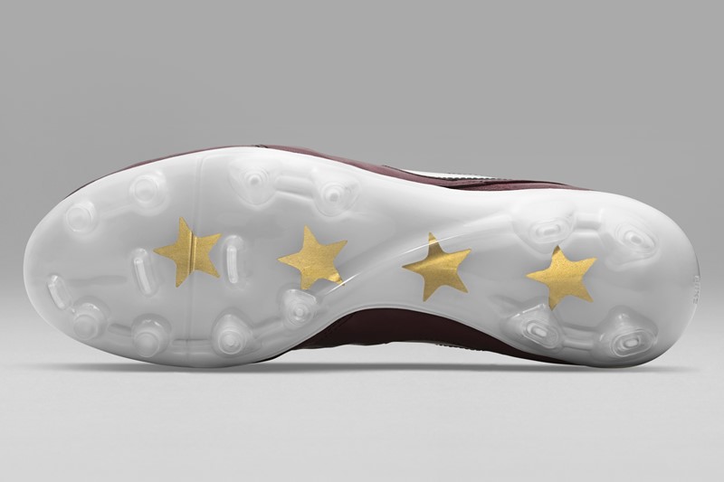 かかととアウトソールに記されたゴールドの4つの星は、イタリアのワールドカップ優勝回数を示すと同時に、「プラトゥム・コレール」のロゴの主要な要素も表現。シューレースの先端部分にはイタリア国旗が入れられているとのことだ。