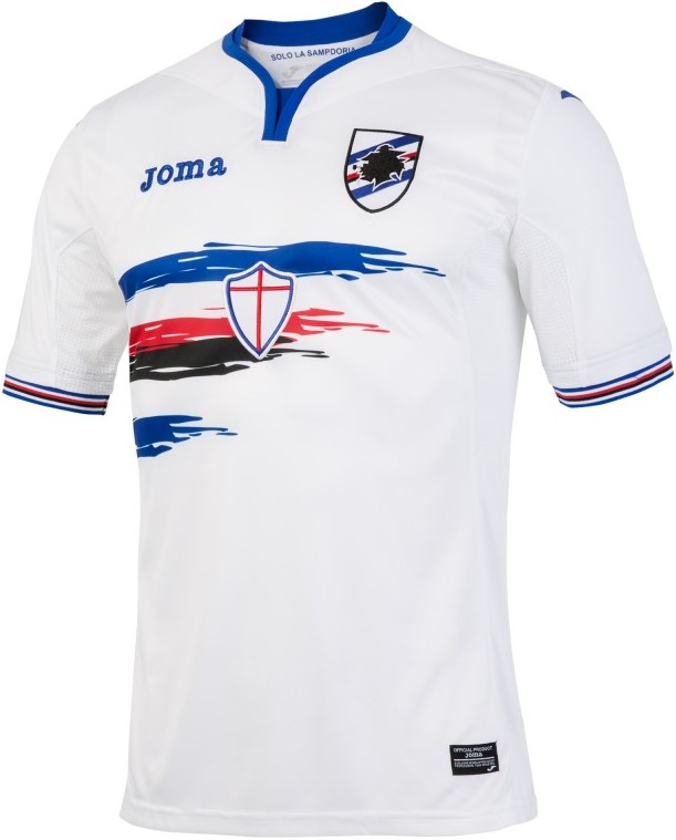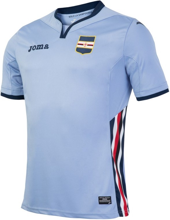 サードは薄い青。ジェノヴァの市章にも使われている「サン・ジョルジョ十字」などを左胸に配置したほか、伝統のストライプを脇に配している。