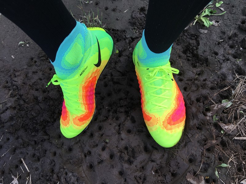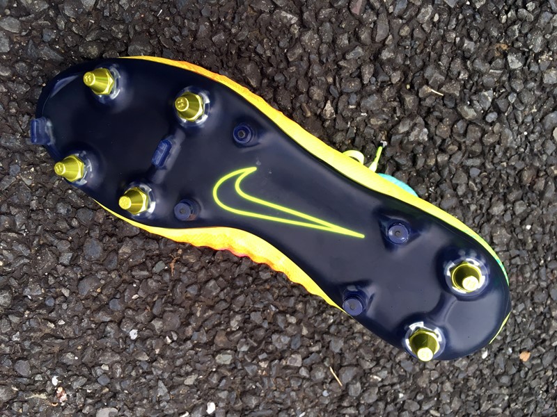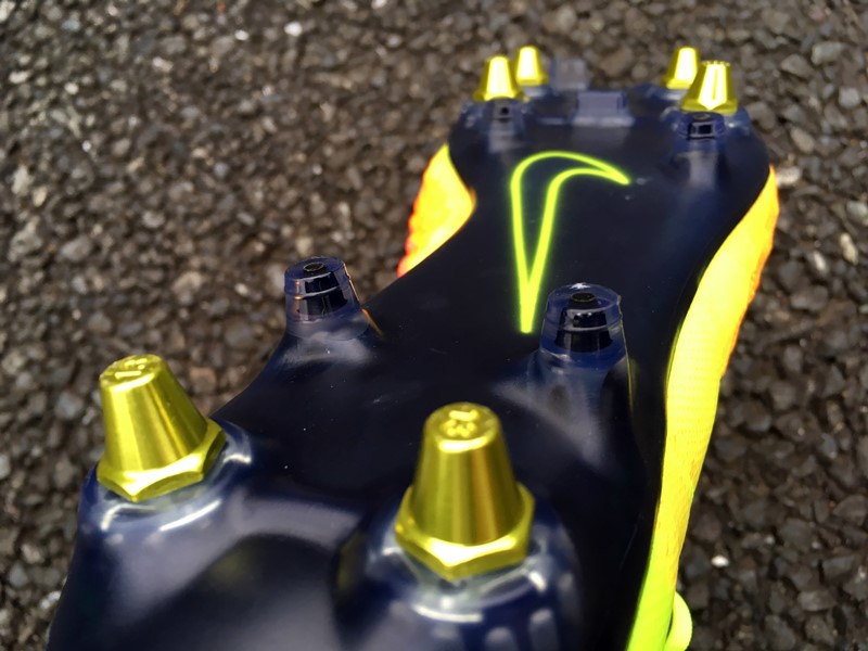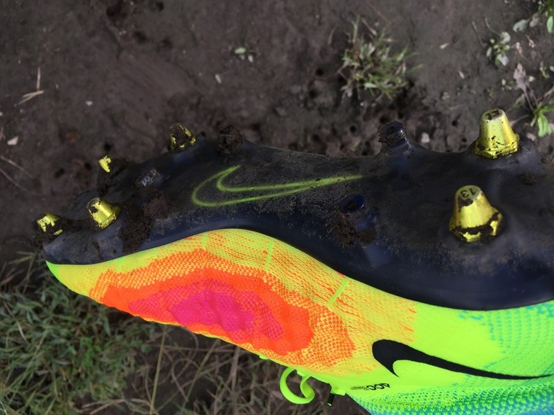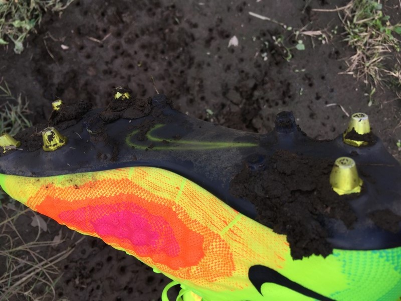 土が付くには付くが、これまで履いてきたスパイクに比べるとかなり少ない。そして、スタッドの間に泥が詰まったとしても、はがれ落ちやすさがこちらは劇的に違った。