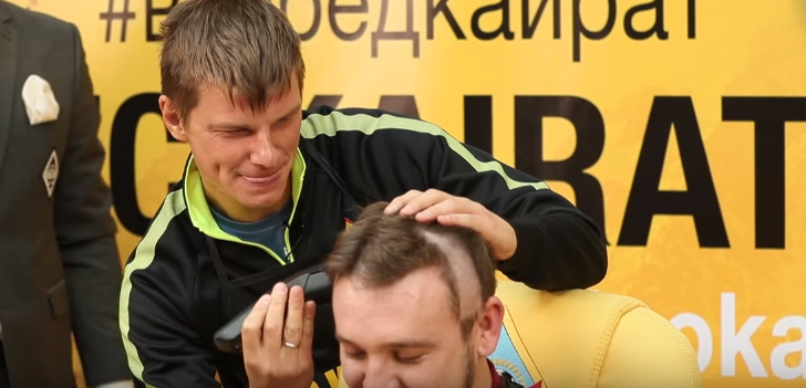 『interfax』などによれば、刈られた彼は地元のジャーナリスト(ブロガーという情報も)だそうで、ある賭けをしていたという。それは1年目のシーズンにアルシャヴィンがもし8得点を決めたら、頭を剃るというもの。