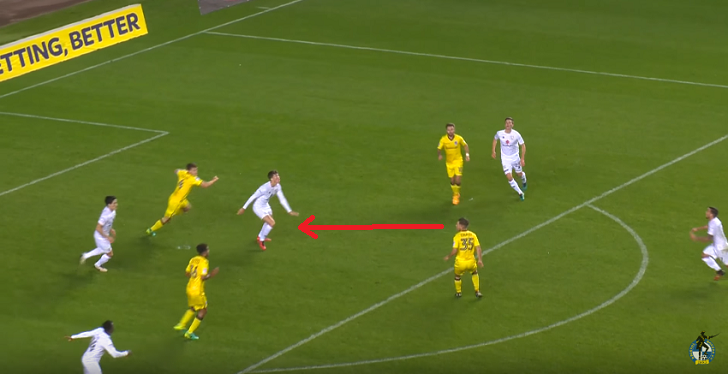 すると落ちてきたボールに対し、チャーリー・コルケットがダイレクトでヒールパス!