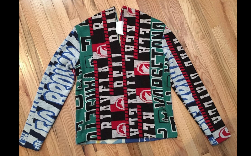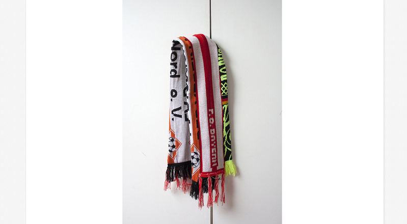 中古のタオルマフラーを元にアイテムを解体、再縫製して1枚のアイテムに昇華させている。1枚1枚デザインは異なるためここでは紹介しきれないのだが、よく見るとドルトムント、バイエルン・ミュンヘン、マンチェスター・ユナイテッドなどが使われていた。