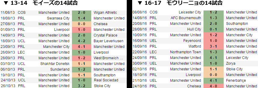 『Soccerway』を参考に、2人のユナイテッドでの最初の14試合を調べてみた。