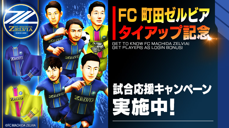 町田の人気選手5名が3D選手となってゲーム内に登場するほか、ユニフォームなどタイアップアイテムがもらえるキャンペーンが10月26日から実施される。