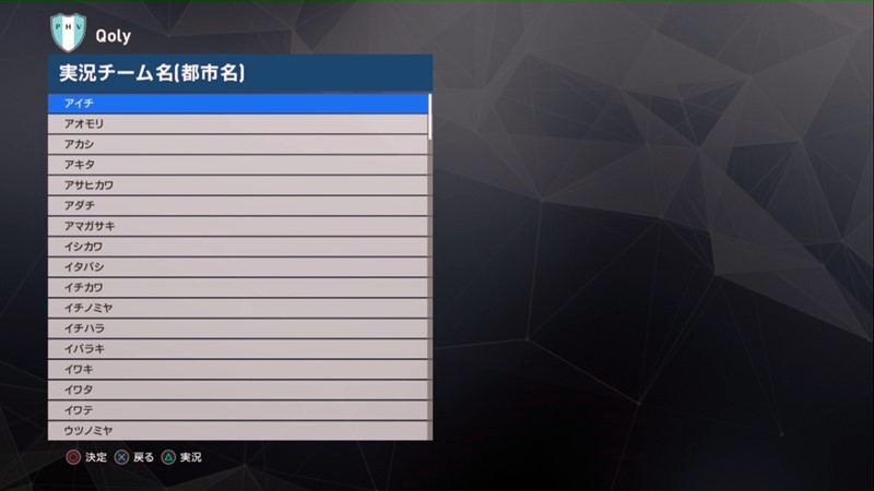 また、実況名はこのように日本などの地名が数多く用意されている。自分のホームタウンのチームを作ることもできるはず。