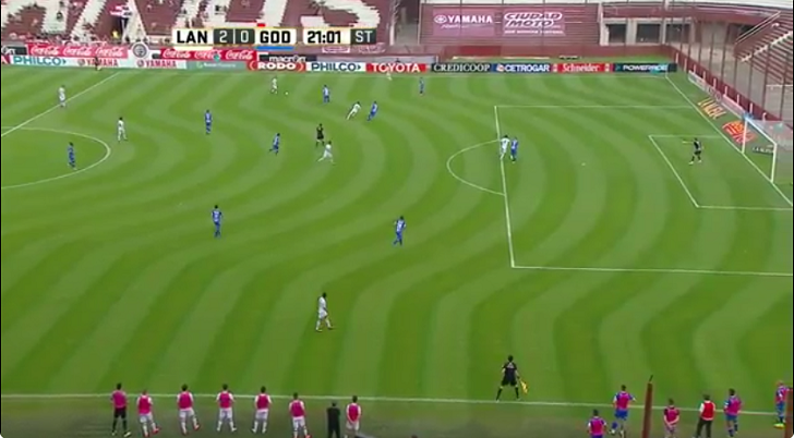 そんななか、アルゼンチン1部ラヌースのホームスタジアムは、ピッチの柄がなかなか副審泣かせであった。