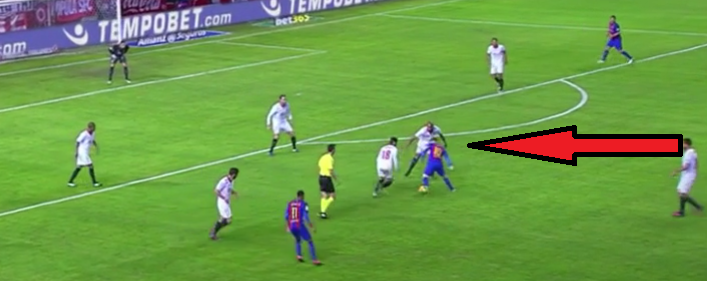 この試合でメッシが見せたゴールにならなかったスーパープレーが話題になっている。それがこれ。