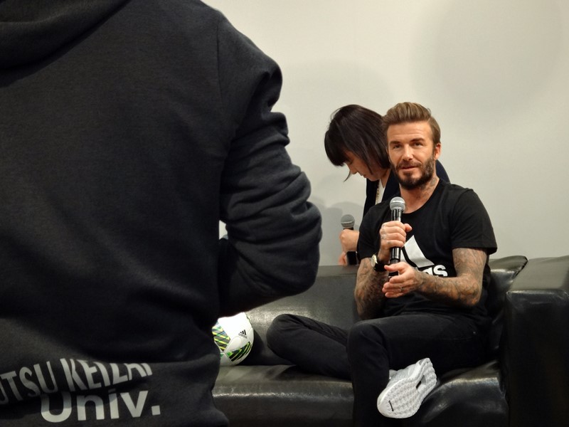 Twitterで事前に受け付けた質問、さらに観覧した流通経済大学サッカー部の選手から受けた質問に対し、ベッカムは一つ一つ丁寧に答えていった。