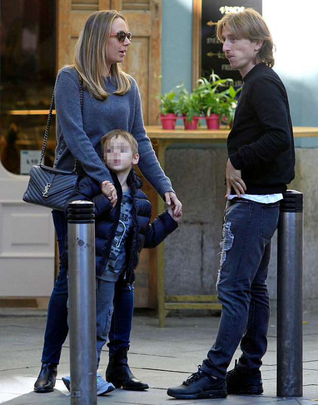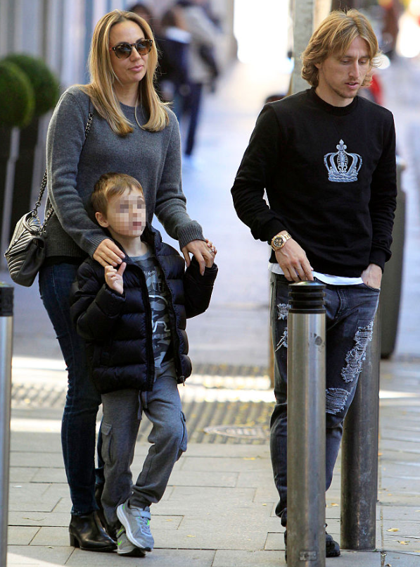 モドリッチは黒のスウェットにダメージデニムなどモノトーンな感じで、家族揃って落ち着いた色合いでまとめてある。