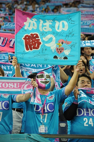 京都のファンからは、あの「ドラゴンボール」に登場する人造人間セルと合体したようなフラッグが作られた。