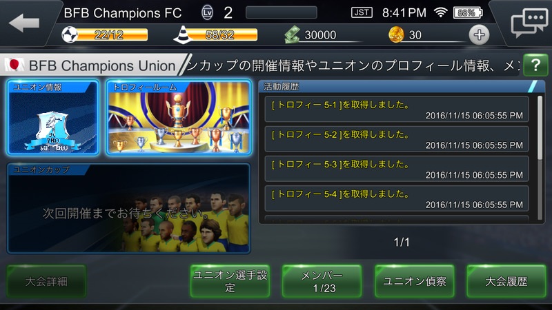 これに合わせて、ゲームではクラブユニオン実装キャンペーンがスタート。キャンペーン期間終了時に所属しているユニオンのメンバー数に応じて、「マイプレミアムスカウトチケット」がプレゼントされる。