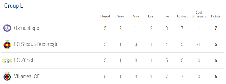 最終節、4位ビジャレアルはホームで2位ステアウア・ブカレストと、1位オスマンルスポルはホームで3位FCチューリッヒと対戦する。