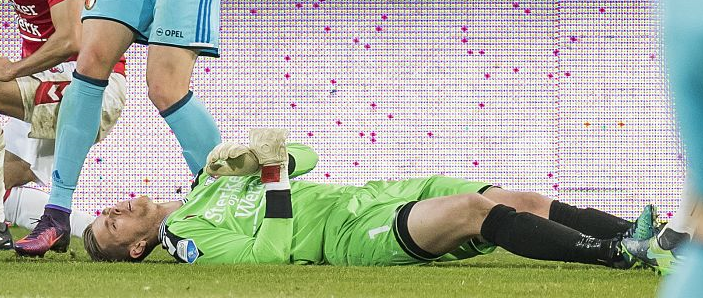 試合後半、ユトレヒトGKロビン・ライテルが相手FWニコライ・ヨルゲンセンと接触し、落下した際に頭をひどく打ちつけてしまった。