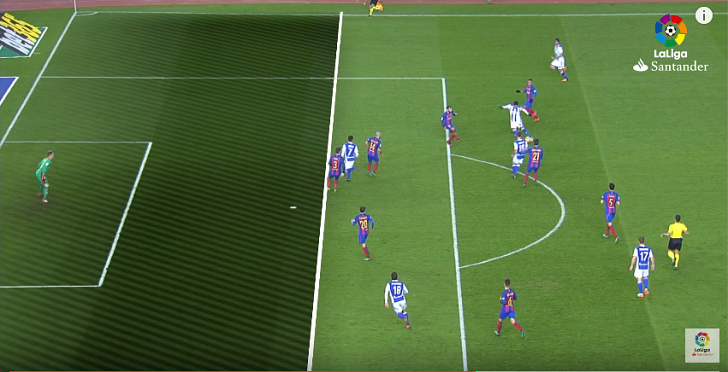 よく見ると副審も最終ラインにはついておらず、どうやらオフサイドラインを見誤ったようだ。ソシエダとしてはあまりにショックの大きなミスジャッジである…。