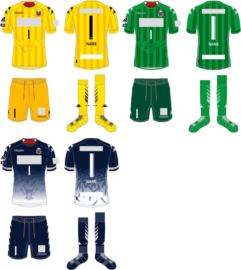 GKユニフォームは、黄色のホーム、緑のアウェイ、青のサードというラインナップ(※スポンサー無しバージョン)。
