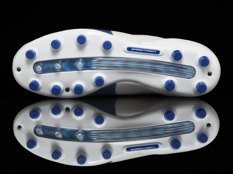 アウトソールには丸型のスタッドを採用し、日本特有の硬い土や人工芝グラウンドに対応。中足部をサポートするスピードトラックとかかと部分をホールドするエクスターナルヒールカウンターが安定性をサポートする。