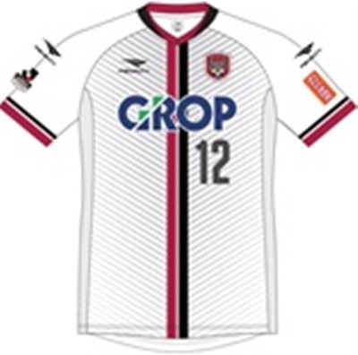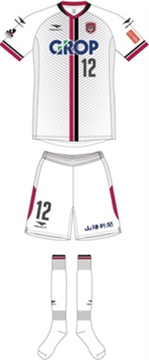 アウェイ(2nd)は白を基調に2色のストライプをセンターに配置。全体に広がるV字パターンは「雉の羽」と「Vitória(勝利)」のVをイメージしている。