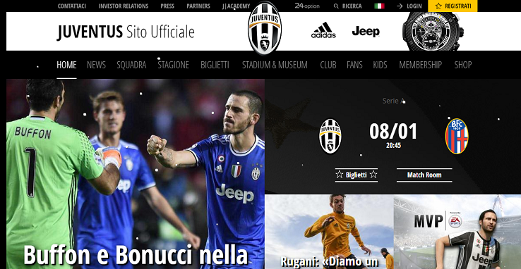 そんなユヴェントスの公式サイトを訪れてみると、ユニークな仕掛けが施されている。