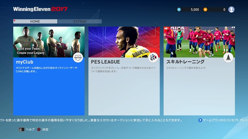 これまでお伝えしてきたe-Sports専用モード「PES LEAGUE」、自分だけのクラブづくりを楽しめる「myClub」、さらに「エキシビションマッチ」や「スキルトレーニング」などを楽しむことができる。
