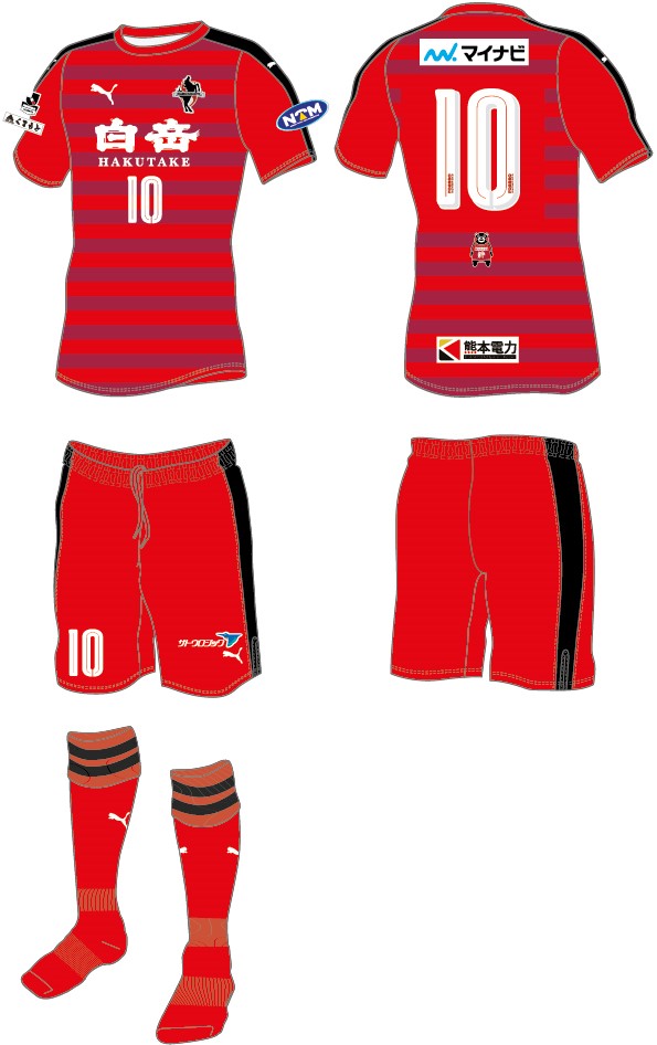 右袖のホームタウン表記には、地震で大きな被害を受けた熊本城を今季から追加。熊本のシンボルでもある「熊本城」を表記し、選手・サポーターが熊本ブランドを全国へ発信することによって、このユニフォームを着た全員が熊本復興の光となるようにという想いが込められている。