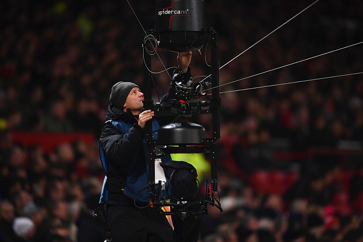 スパイダーカムとはワイヤーを使って空中で撮影する特殊機材のこと。ワールドカップやEURO、UEFAチャンピオンズリーグ決勝といった大一番ではすでに導入されているが、リーグ戦で用いられるのはレアケースだ。