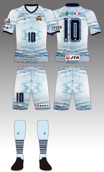 アウェイ(2nd)は青みがかった白を基調としたデザイン。ホームと違う模様はジーンズの柄のバリエーションを表現しているとのことだ。