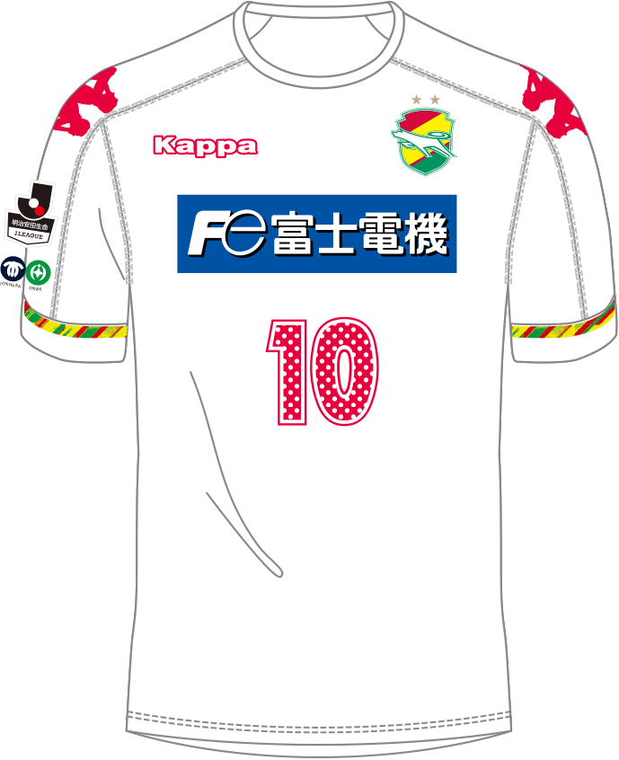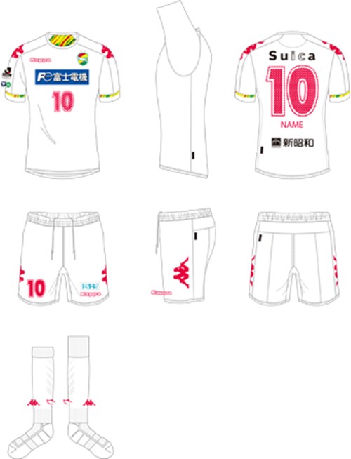 アウェイ(2nd)はシンプルな白を基調とし、Kappaのロゴや番号を赤で表現。意外に新鮮なイメージのデザインに仕上げている。