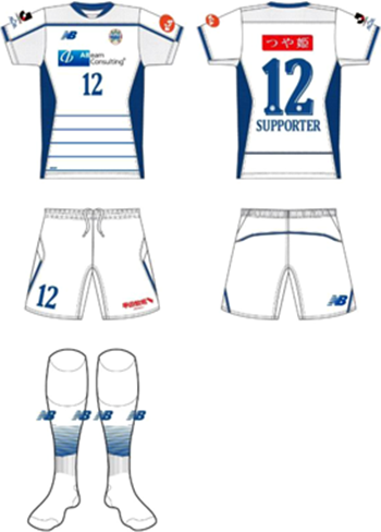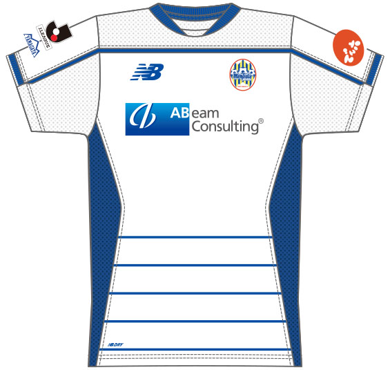 アウェイ(2nd)は白を基調に、モンテディオブルーのラインボーダーを差し色で配置。ホームと対を成すような爽やかな仕上がりだ。