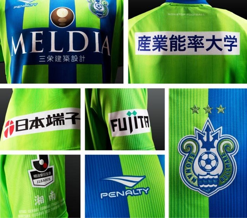 ユニフォームスポンサーは、胸の「三栄建築設計」、背中上部の「産業能率大学」、背中下部の「日本端子」、パンツの「横浜ゴム」が継続。袖には、ベルマーレの母体となったことで知られる「フジタ」が18年ぶりにスポンサーとして復活した(ちなみに、湘南は来年2018年がクラブ創設50周年)。