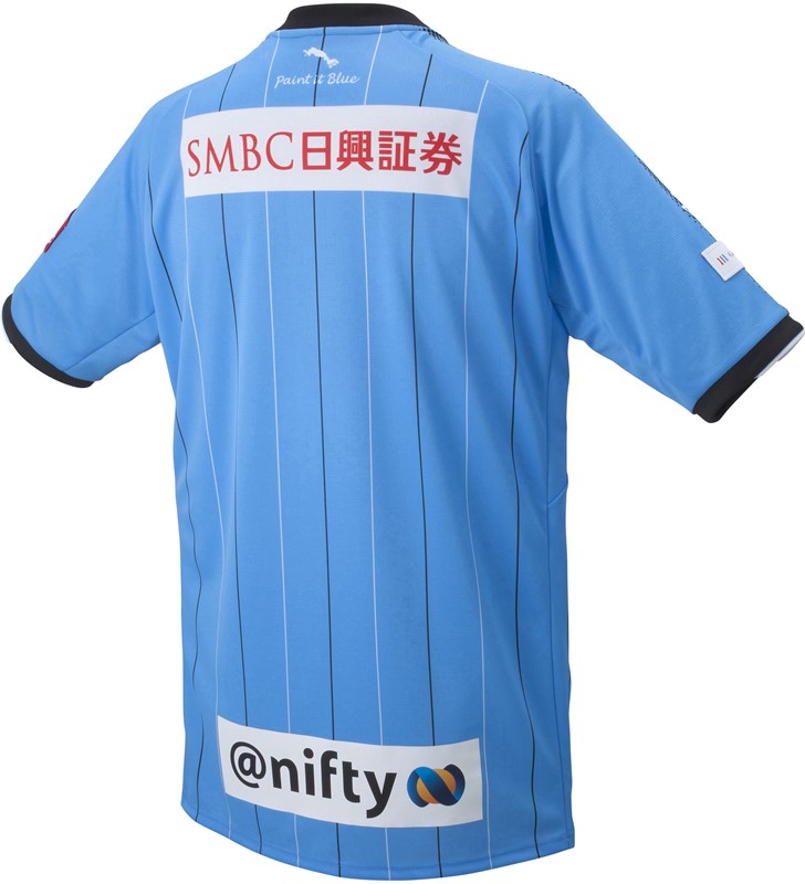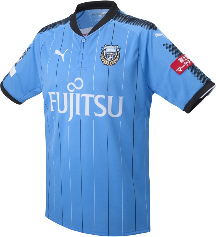 ホーム(1st)は、フロンターレブルーを基調にしたピンストライプ柄を採用。また、節目となる20周年を経て、クラブがまた新たな一歩を踏み出すにあたり、もう一度初心に戻り、一体感のある雰囲気を作り上げるための象徴となるよう、クラブ初の全身フロンターレブルーのデザインを採用している。